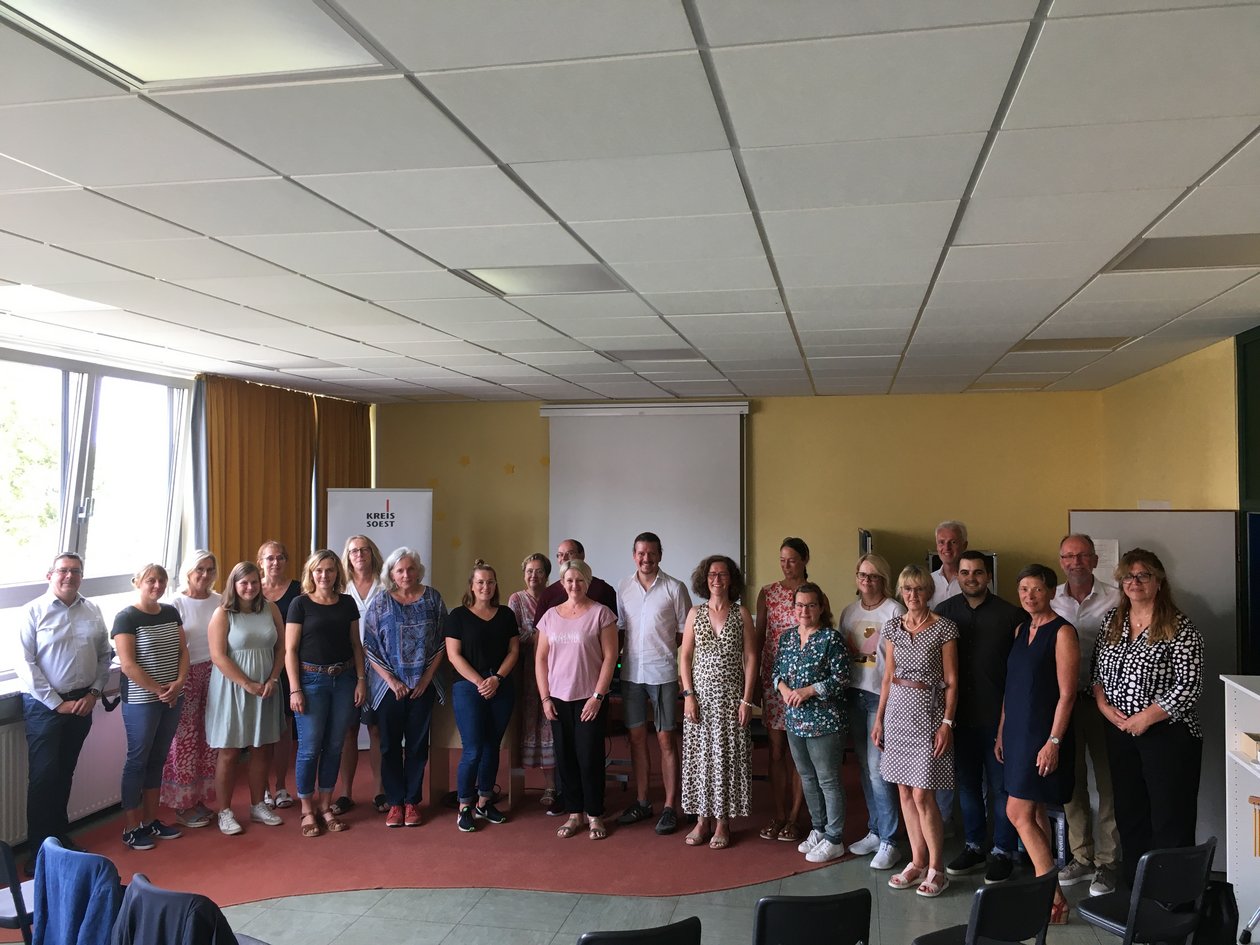 Mit dem Ziel, rechenschwache Kinder in den Grundschulen der Bildungsregion Kreis Soest optimal zu fördern, nahmen 18 Mathematik-Lehrkräfte aus 13 Grundschulen aus dem gesamten Kreisgebiet am zweiten Durchgang der Qualifizierungsreihe 2019 bis 2022 teil. Nach der Auftaktveranstaltung im Januar 2019 folgten fünf Inputveranstaltungen mit dem Hauptreferenten Dr. Axel Schulz vom Institut für Didaktik der Mathematik an der Universität Bielefeld.