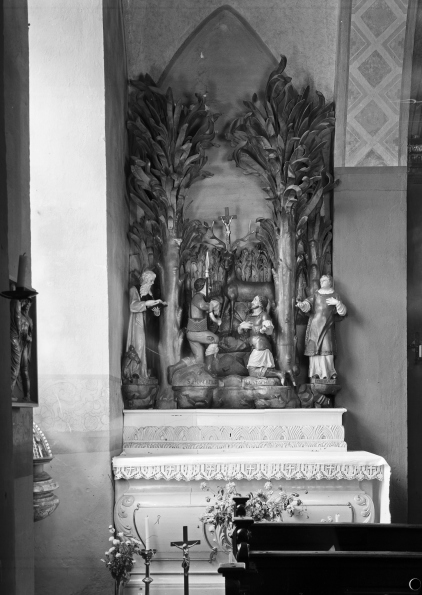 An dieser Stelle öffnet sich der Blick auf den Ort Hirschberg. Bis heute ist Hirschberg rundum von Wald umgeben. Vor der Gründung des Ortes Hirschberg auf der höchsten Erhebung der Umgebung gab es bereits die Ortschaft Odacker, die heute von hier aus als kleines Feldgehölz erkennbar ist.
