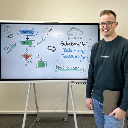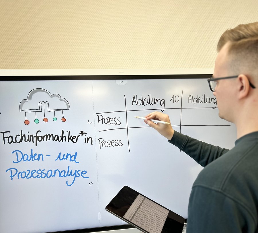 Seit 2024 haben wir unser Portfolio bezüglich der Ausbildung von Fachinformatiker*innen um die Fachrichtung der „Daten- und Prozessanalyse“ erweitert. Sie ist eine von zwei neuen Fachrichtungen, welche im Zuge der Neuordnung der IT-Berufe entstanden ist.