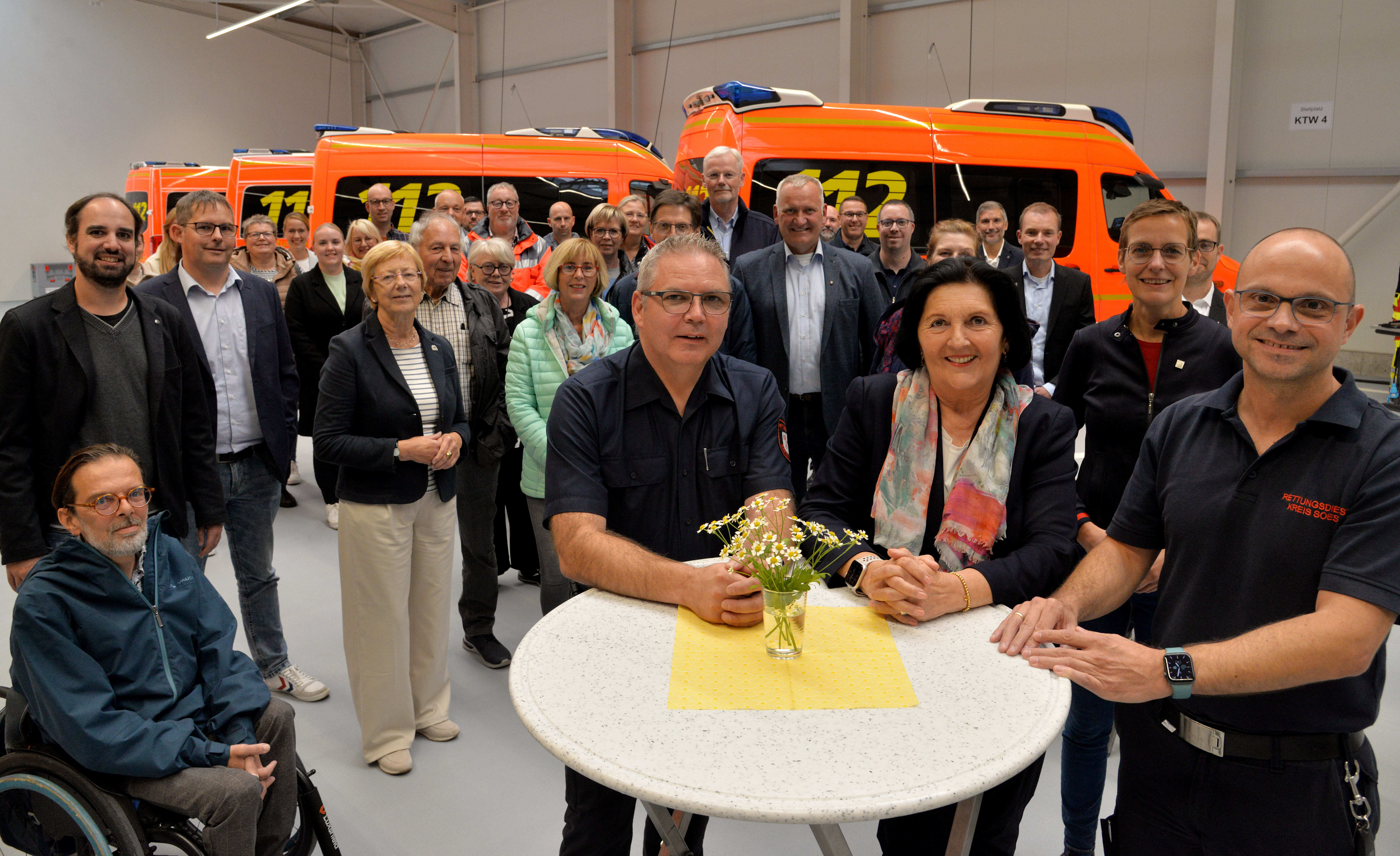 „Was ich bisher zurückgemeldet bekommen habe, ist, dass sich hier alle Beschäftigten sehr wohl fühlen. Doch auch für unsere Bürgerinnen und Bürger ist nun mit der zentralen Struktur die beste Lösung gefunden worden“, stellte Landrätin Eva Irrgang im Rahmen einer kurzen Ansprache heraus. Sie lobte das hohe Engagement der Rettungskräfte: „Im Verwaltungsbereich aber auch in der Politik nehmen wir das sehr wohl wahr und möchten Ihnen für Ihren Einsatz von Herzen danken.“