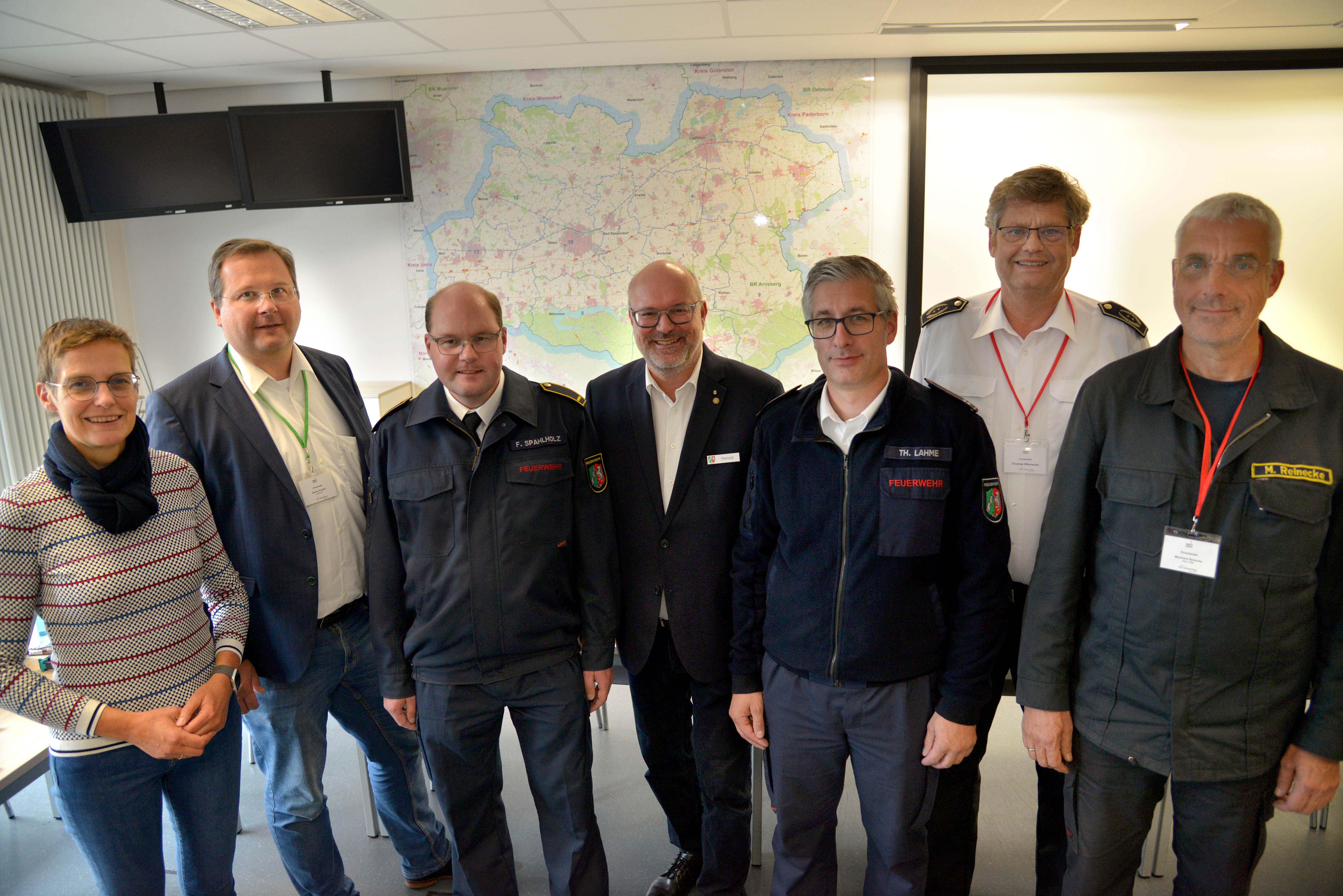 Die Dynamik der Ereignisse hält den Adrenalinspiegel beider Krisenteams konstant hoch. Im Krisenstab der Kreisverwaltung übernimmt zunächst Ricarda Oberreuter, Dezernentin für Gesundheit, Verbraucherschutz und Gefahrenabwehr, und am zweiten Tag dann Sascha Kudella, Dezernent für Jugend, Bildung und Soziales, die Leitung. Dem Einsatzstab der Feuerwehren steht der stellvertretende Kreisbrandmeister Meinhard Reinecke vor. Beide Teams stehen in engem Austausch und gleichen ihre Arbeitsschritte ab.