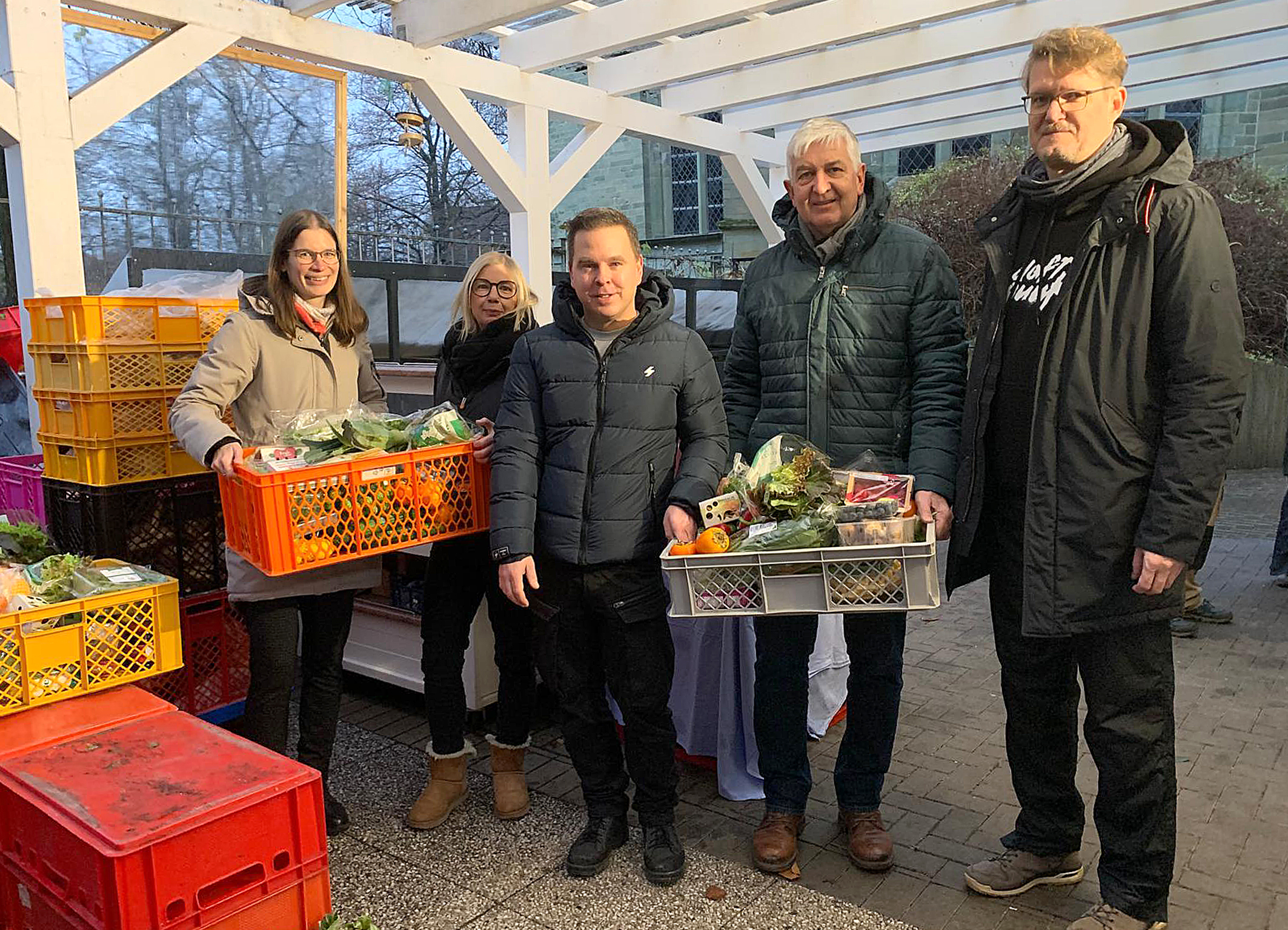 „Als wir im Sommer zum 25-Jährigen Tafeljubiläum eingeladen wurden, war mir wichtig, dass wir ein Geschenk mitbringen, das unsere Wertschätzung gegenüber dieser wichtigen Institution zeigt“, erzählt Martin Steinmeier, Geschäftsführer des Jobcenters. „Daher haben wir versprochen, am Nikolaustag zur Tafel zu kommen und einen Vormittag mit ins Rad zu greifen und bei der Lebensmittelverteilung an bedürftige Personen zu helfen.“ Gesagt, getan. Für sieben Jobcenter-Bedienstete hieß es am Freitag warm anziehen und Ärmel hochkrempeln.