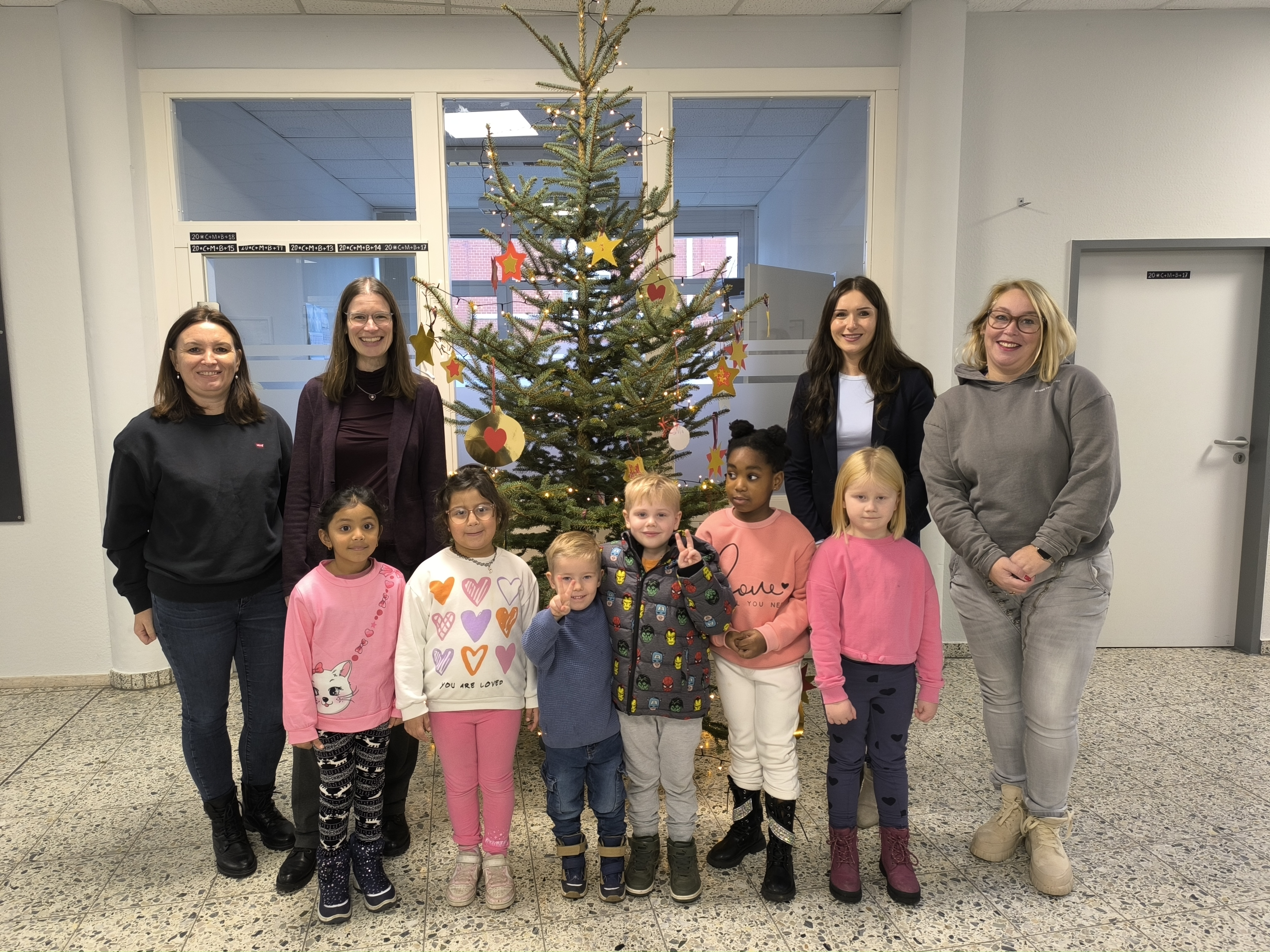 „Gerne tauschen wir uns aus, wenn kurzfristig Betreuungsplätze für Kinder benötigt werden, wenn zum Beispiel Eltern eine Arbeit aufnehmen können oder es Fragen zu den Bildungs- und Teilhabeleistungen gibt“, berichtet Anna Dedic, Beauftragte für Chancengleichheit am Arbeitsplatz im Jobcenter. „Toll ist es, dass wir aber auch bei solchen Aktionen wie dem Baum schmücken unsere Kooperation mit Leben füllen können.“ Während des Schmückens erzählten die Kinder von ihren Weihnachtswünschen und genossen im Anschluss eine süße Belohnung.