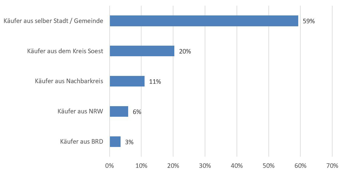Und: „Der Immobilienmarkt ist ein weitgehend heimischer Markt“, wie Eva Börger als Vorsitzende des Gutachterausschusses erklärt. Demnach wurden im Jahr 2024 im Kreis Soest 2.154 Kaufverträge geschlossen, wobei in 59 Prozent der Fälle der Erwerber aus derselben Stadt beziehungsweise Gemeinde kam, in der auch das erworbene Grundstück liegt.