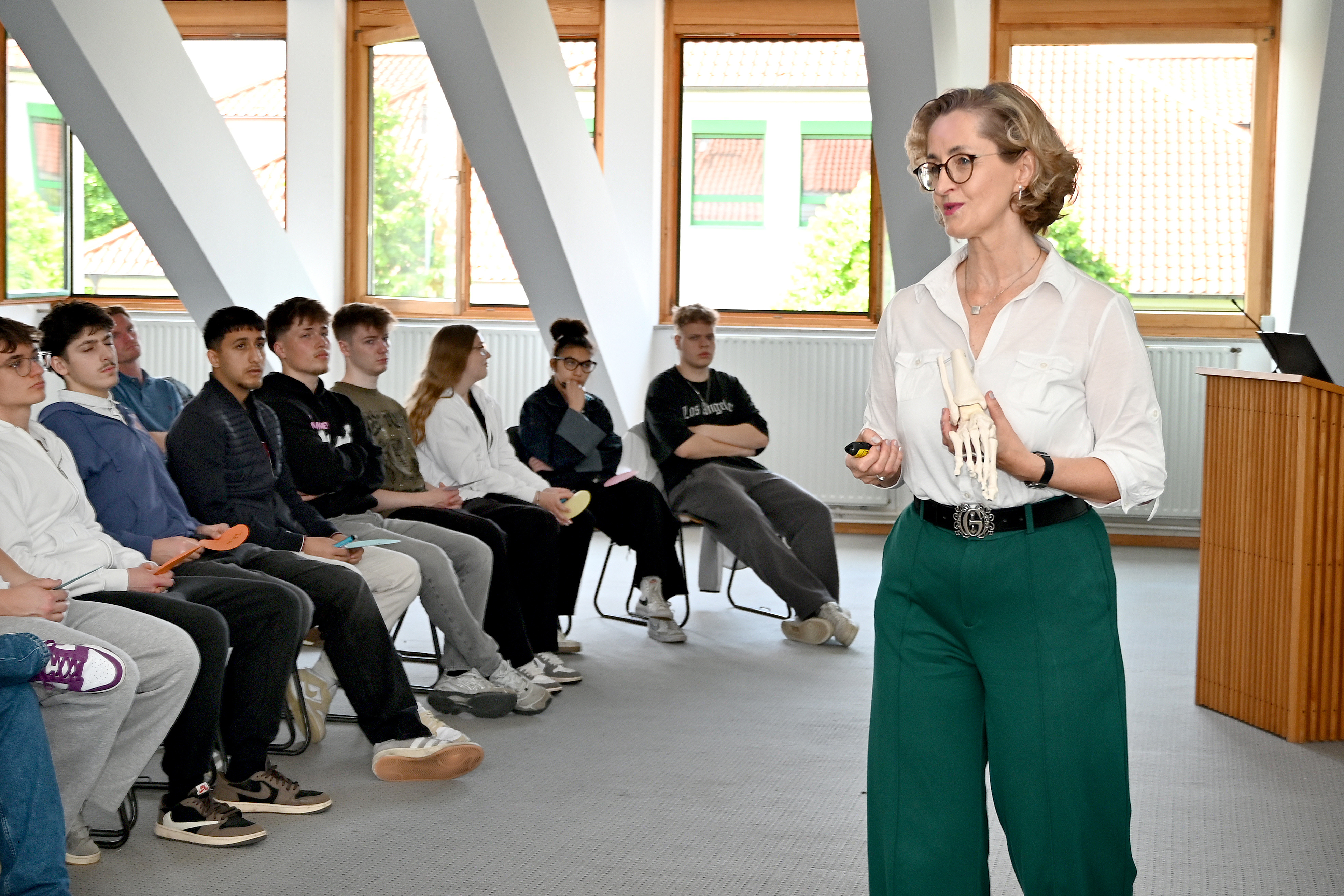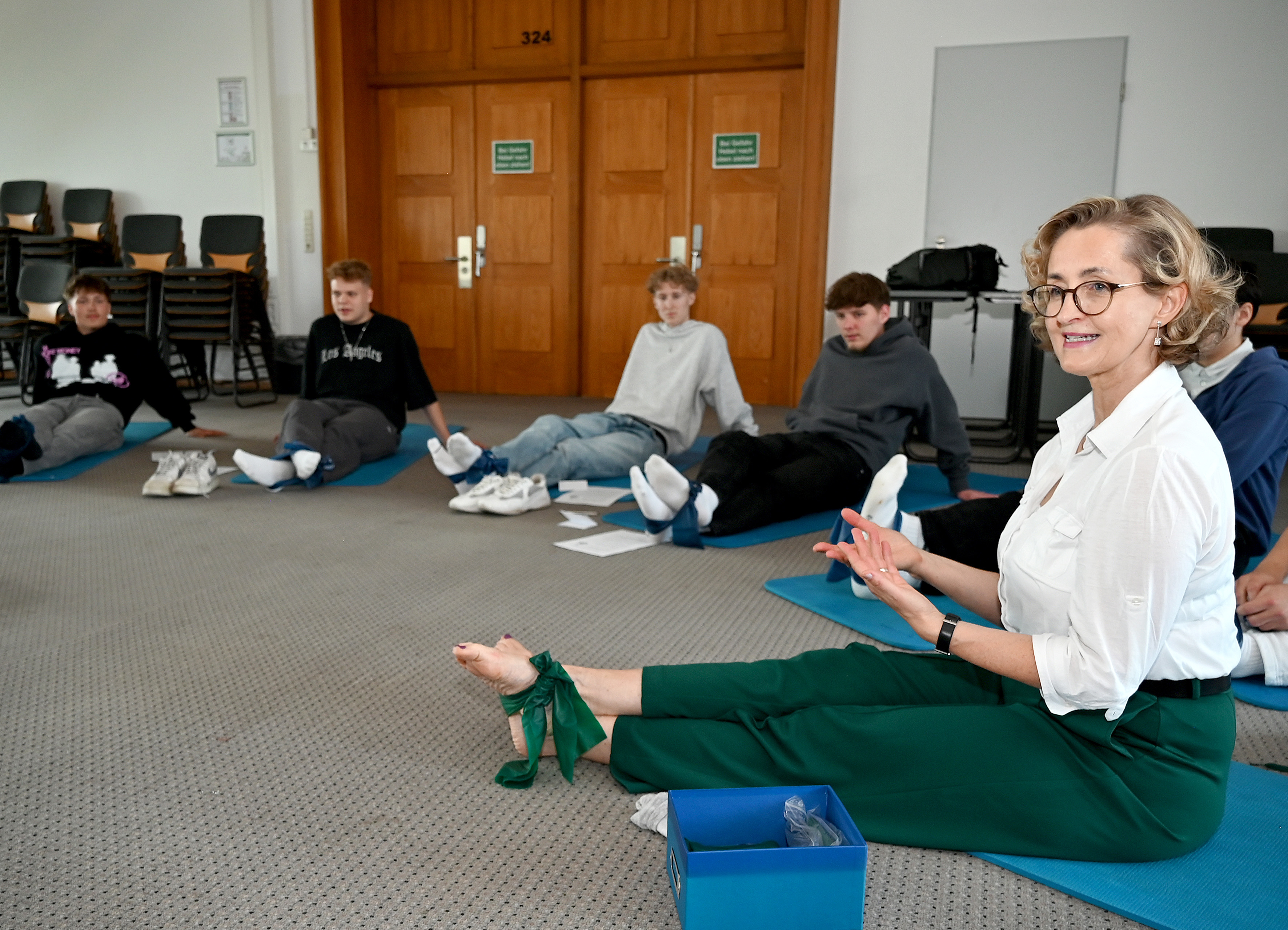Bei den Schülerinnen und Schülern der Profilklasse „Fitness“ am kreiseigenen Hubertus-Schwartz-Berufskolleg (Soest) traf Dr. Elisabeth Exner-Grave damit auf offene Ohren. Die jungen Menschen absolvieren ihre Fachhochschulreife Wirtschaft und Verwaltung. Mit zwei Zusatz-Stunden pro Woche legen sie einen besonderen Schwerpunkt auf den Bereich Bewegung und Fitness. Aktuell beschäftigen sie sich mit dem Thema Ballett. In dieser Sportart kommt es durch die extreme Belastung besonders auf eine gute Fußgesundheit an.