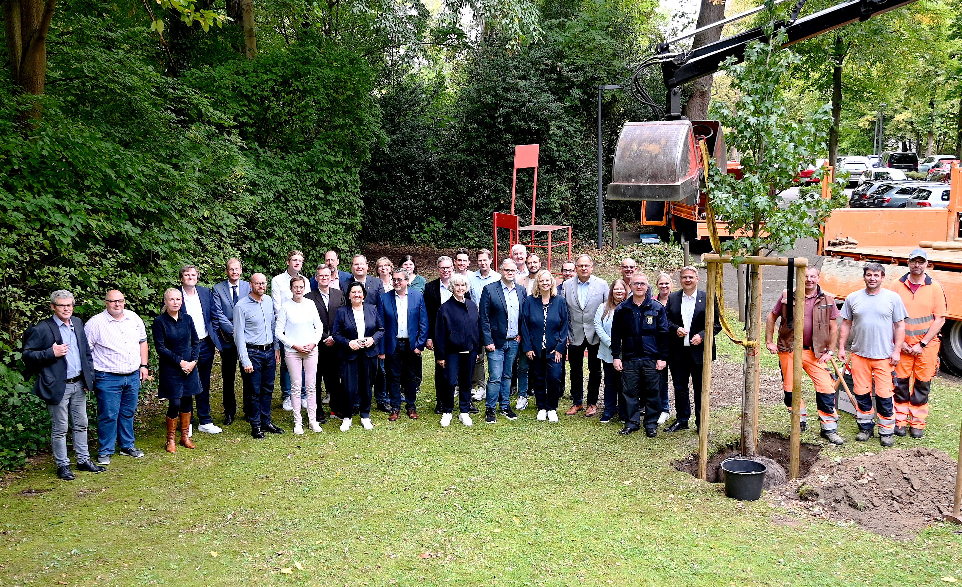 Bei der Pflanzaktion waren neben den Abteilungsleitungen auch Mitarbeiter des Baubetriebshofs beteiligt, die dafür sorgten, dass der Baum einen guten Platz erhielt. Die Amtszeit von Landrätin Irrgang endet am 31. Oktober.