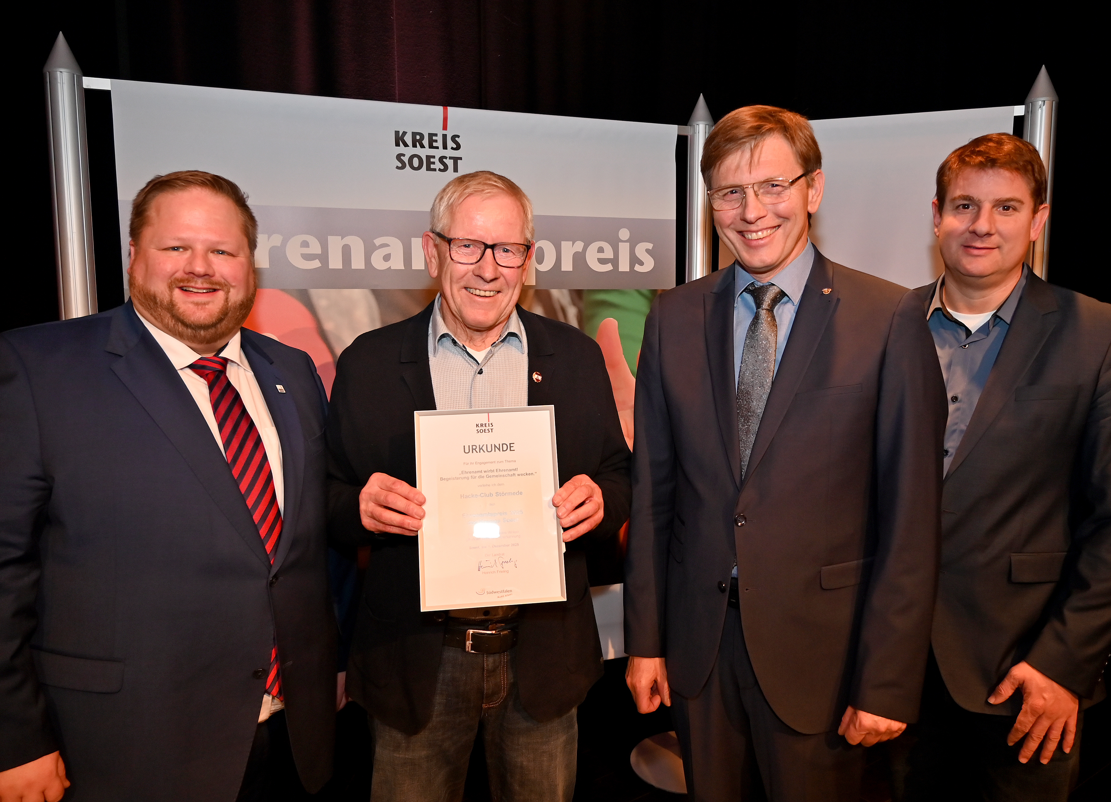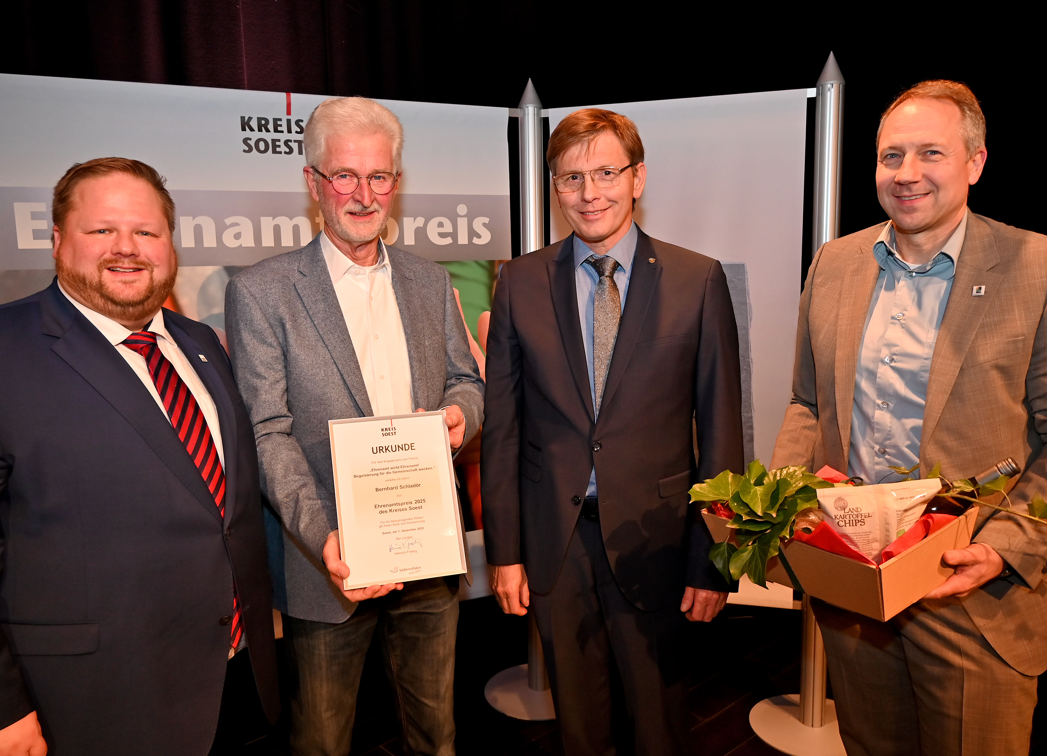 Der Ehrenamtspreis ist in diesem Jahr mit insgesamt 2.100 Euro dotiert, die zu gleichen Teilen auf die drei Preisträger aufgeteilt werden. 1.000 Euro stammen aus dem Etat des Landrats, weitere 1.100 Euro steuert der Rotary Club Erwitte-Hellweg bei. Präsident Ulrich Ledwinka drückte in seiner Ansprache den Preisträgerinnen und Preisträgern ebenfalls seine Wertschätzung aus: „Ehrenamtliches Engagement ist gelebte Demokratie. Wer sich freiwillig einbringt, übernimmt Verantwortung und gestaltet unsere Gesellschaft aktiv mit“, sagte Ledwinka. Der Rotary Club sei glücklich, auch in diesem Jahr den Ehrenamtspreis mit einem kleinen Beitrag aus den Mitteln der club-eigenen Stiftung unterstützen zu können. Schließlich befördere der Preis die wichtige Symbiose aus Politik und Ehrenamt – „denn Ehrenamt braucht Unterstützung auch von dort“.