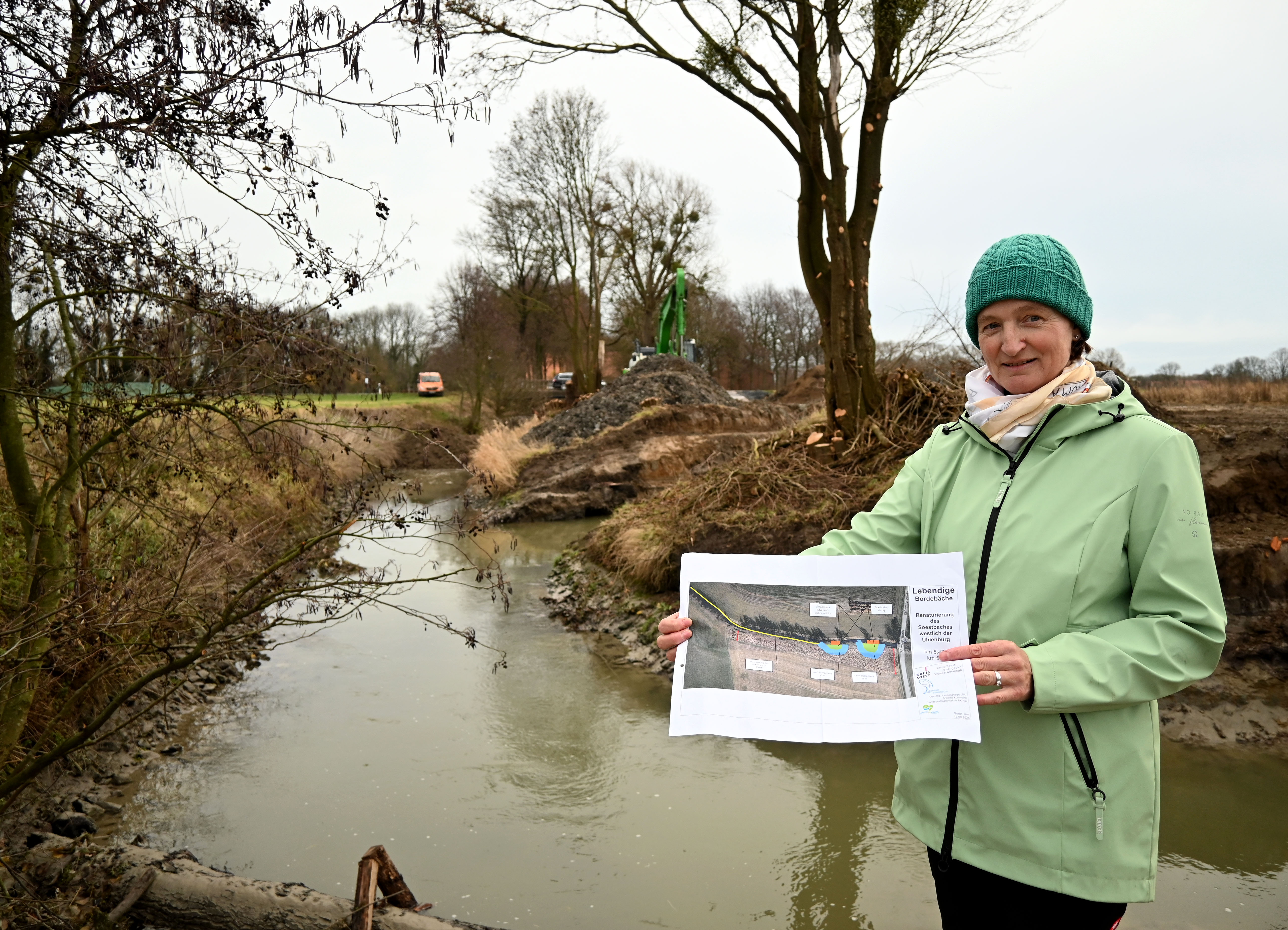 Der Startschuss für die Maßnahme fiel am 11. November. „Ende Dezember wird sie abgeschlossen sein – vorausgesetzt, das Wetter spielt mit“, erklärt die zuständige Bauleiterin und Landschaftsarchitektin des Kreises Annette Kühlmann. Die notwendigen Flächen konnten, wie bei anderen Renaturierungsprojekten, im Rahmen eines Flurbereinigungsverfahrens gewonnen werden. Dabei handelt es sich vereinfacht dargestellt um ein Grundstückstauschverfahren: Die Flurbereinigungsbehörde erwirbt für den Kreis Soest die für die Renaturierung benötigte Fläche entlang des Bachlaufs und stellt dem Eigentümer im Gegenzug eine wertgleiche Ersatzfläche an anderer Stelle zur Verfügung. Die zuständige Flurbereinigungsbehörde ist das Dezernat 33 der Bezirksregierung Arnsberg.