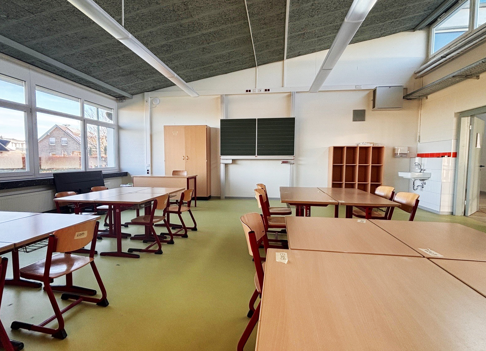 Alle zwölf Klassenräume, das Foyer – nun auch als Aula nutzbar –, die Verwaltungsbereiche und Nebenräume, die Räume der Offenen Ganztagsschule (OGS) und die Sanitäranlagen wurden kernsaniert. „Alle Oberflächen sind neu, teilweise wurde auch der Estrich erneuert“, erklärt Projektleiter Michael Manzke aus dem Sachgebiet Technische Immobilien beim Kreis Soest. Die Haustechnik wurde ebenso vollumfänglich modernisiert wie sämtliche Elektroleitungen und -installationen. Statt mit Gas wird jetzt mit einer Pelletheizung geheizt. OGS und Turnhalle haben eine neue Lüftungsanlage erhalten. Auch die Duschen der Turnhalle werden instandgesetzt.