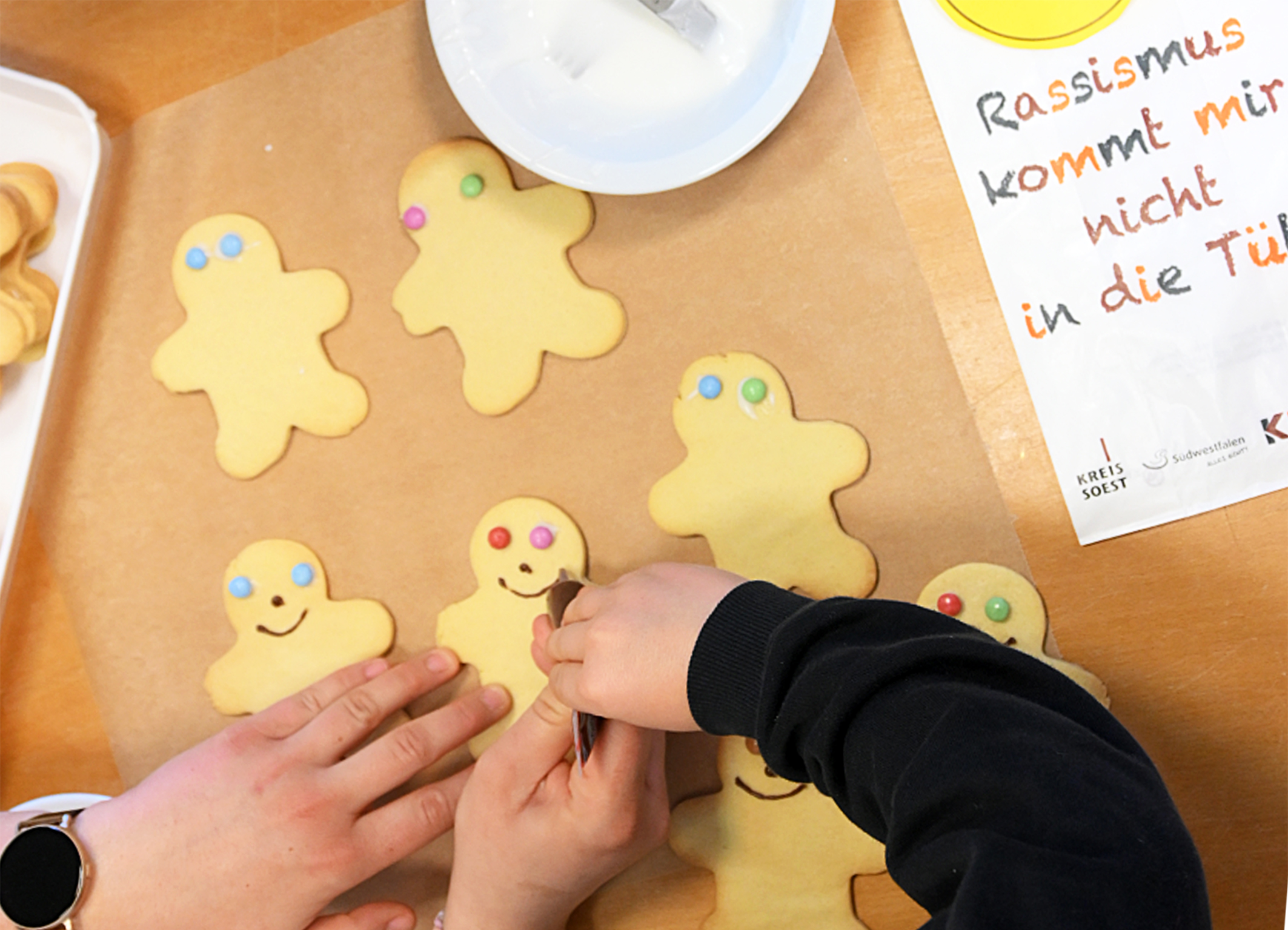 Zahlreiche Kitas aus dem ganzen Kreisgebiet hatten sich für die Umsetzung der Aktion vielfältige und kindgerechte Aktionen ausgedacht. Eine teilnehmende Einrichtung war die AWO-Kindertageseinrichtung Abraxas in Erwitte. Gemeinsam mit den Fachkräften verzierten die 75 Kinder selbst gebackene Kekse und verpackten sie in den Aktions-Tüten.