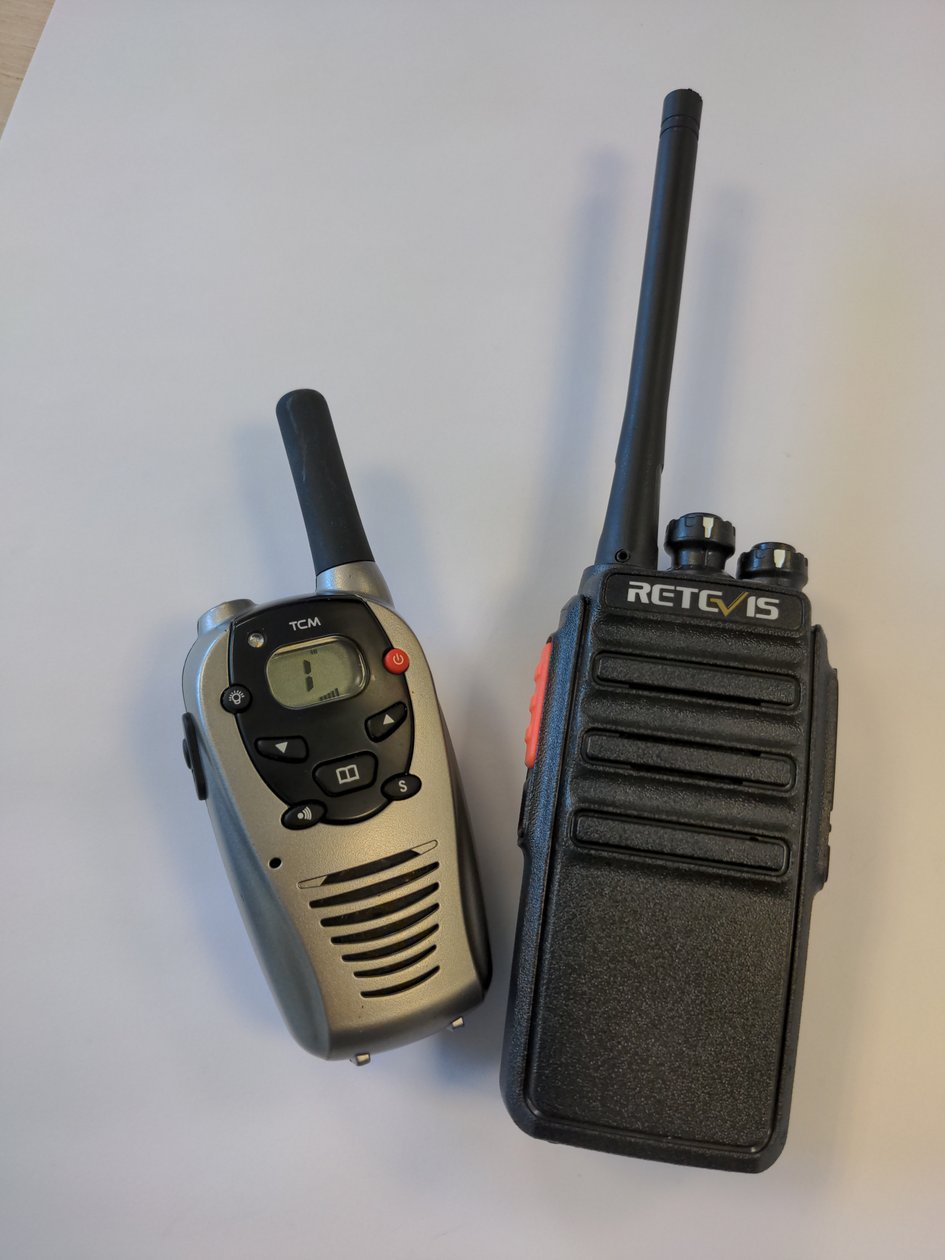 Sie benötigen ein PMR446-Funkgerät. Das sind kleine Walkie-Talkies mit in der Regel 16 schaltbaren Kanälen. Das gut sortierte Kinderzimmer hat vielleicht ein solches Gerät ungenutzt übrig. PMR446, oft auch kurz nur als PMR (kurz für Personal Mobile Radio, Private Mobile Radio oder Professional Mobile Radio) bezeichnet, ist (in Deutschland seit 1999) eine Jedermannfunkanwendung, der der UHF-Frequenzbereich 446,000–446,200 MHz zugeteilt ist. Die Reichweite ist stark von der Bebauung und Umgebung abhängig. Von 500m bis hin zu vier Kilometer Reichweite sind möglich. Bei Sichtverbindung sogar weitaus mehr.